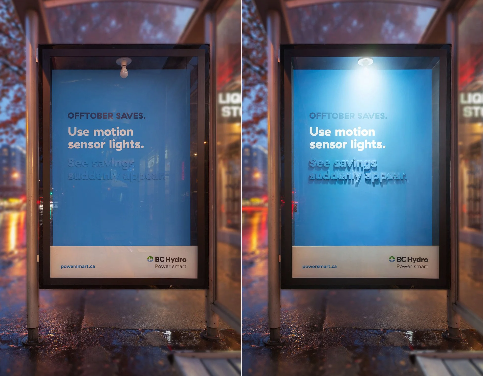 Power-saving tips were brought to life in transit shelters as part of BC Hydro’s month-long conservation campaign. In every case, the tip was built and practically demonstrated within the medium itself.