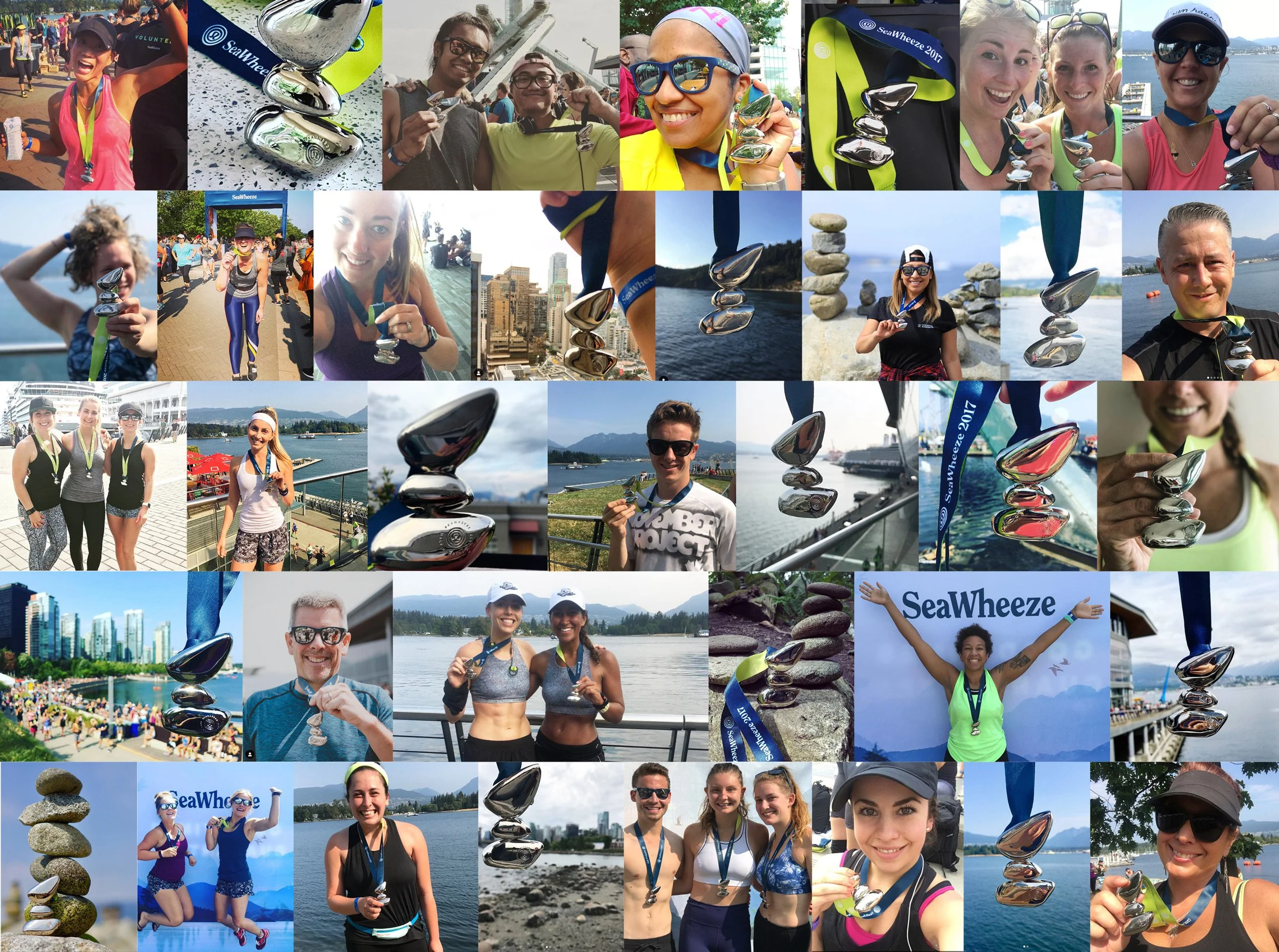 This SeaWheeze half-marathon medal was inspired by the iconic cairns, or balancing rock stacks, along Vancouver’s English Bay. Three rocks were used–for yoga, run and party.